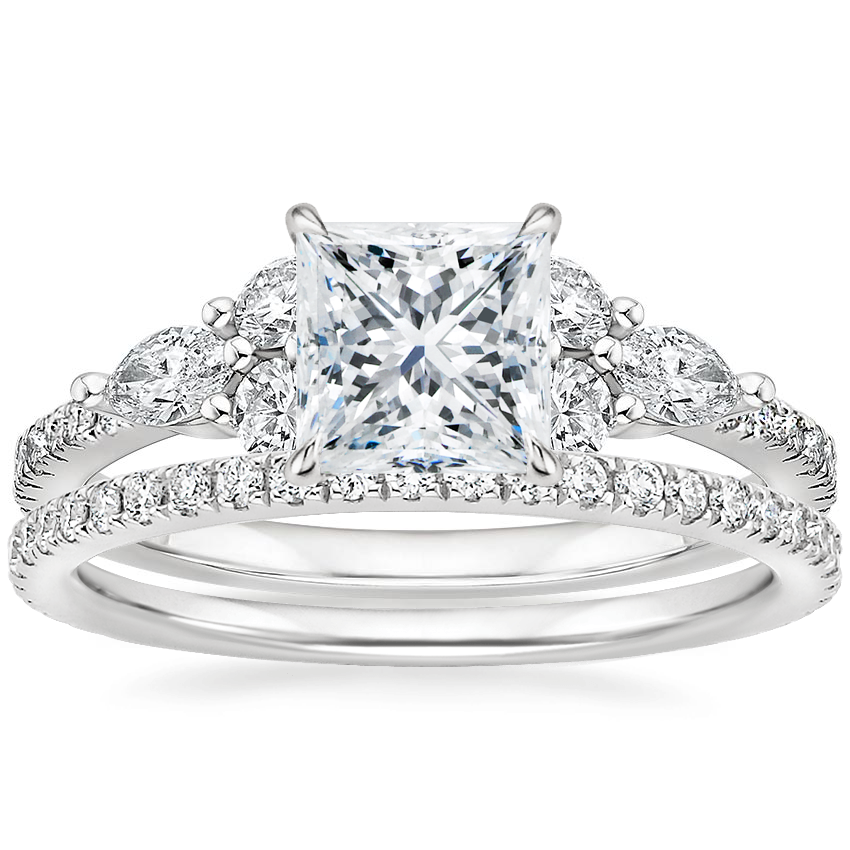 18K White Gold Luxe Nadia Diamond Ring (1/2 ct. tw.) with Luxe Ballad Diamond Ring (1/4 ct. tw.)