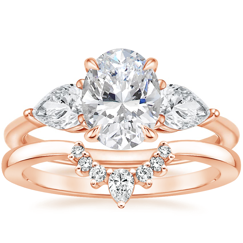 14K Rose Gold Luxe Opera Three Stone Diamond Ring with Lunette Diamond Ring