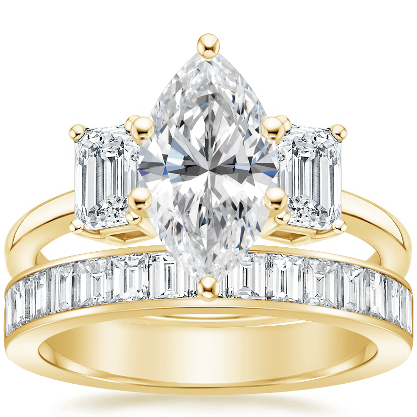 18K Yellow Gold Luxe Rhiannon Diamond Ring (3/4 ct. tw.) with Channel Set Baguette Diamond Ring (1 ct. tw.)