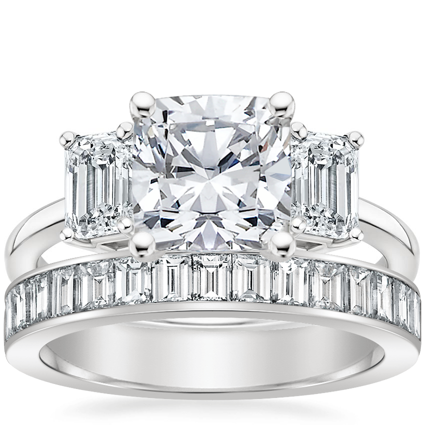 Luxe Rhiannon Diamond Ring (3/4 ct. tw.) with Channel Set Baguette Diamond Ring (1 ct. tw.) in Platinum