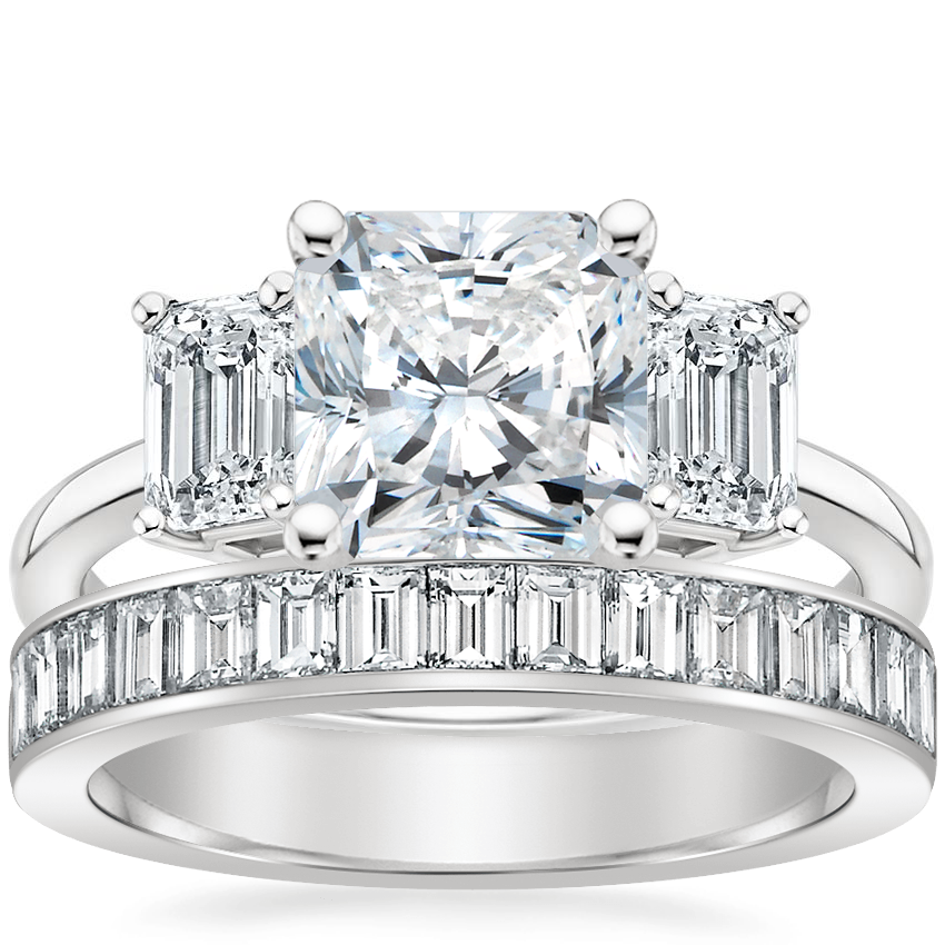 Luxe Rhiannon Diamond Ring (3/4 ct. tw.) with Channel Set Baguette Diamond Ring (1 ct. tw.) in 18K White Gold