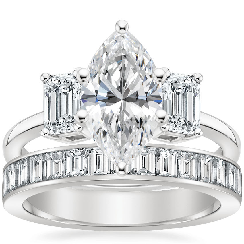 18K White Gold Luxe Rhiannon Diamond Ring (3/4 ct. tw.) with Channel Set Baguette Diamond Ring (1 ct. tw.)