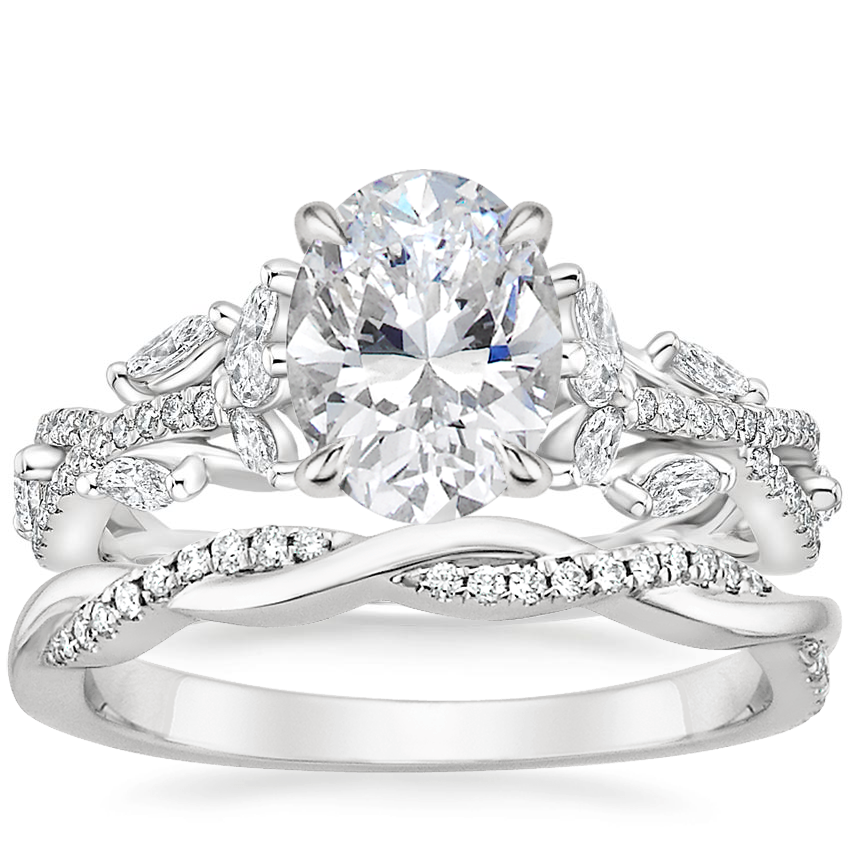 18K White Gold Luxe Secret Garden Diamond Ring (3/4 ct. tw.) with Petite Twisted Vine Diamond Ring (1/8 ct. tw.)