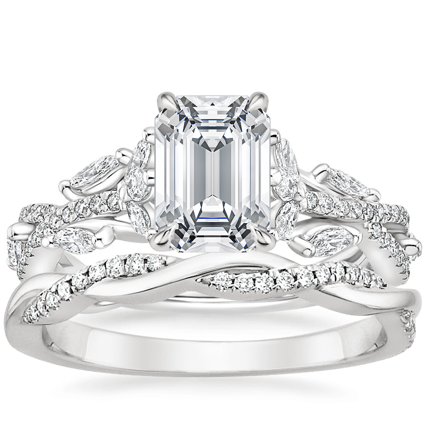 18K White Gold Luxe Secret Garden Diamond Ring (3/4 ct. tw.) with Petite Twisted Vine Diamond Ring (1/8 ct. tw.)