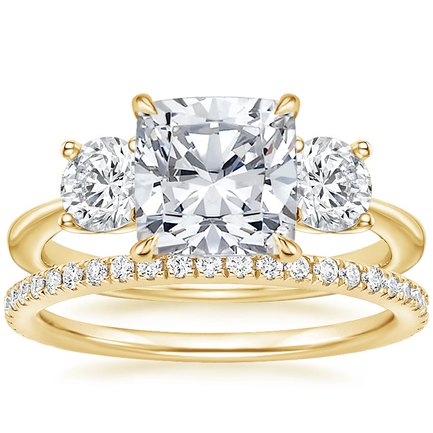 18K Yellow Gold Luxe Selene Three Stone Diamond Ring (2/3 ct. tw.) with Luxe Ballad Diamond Ring (1/4 ct. tw.)