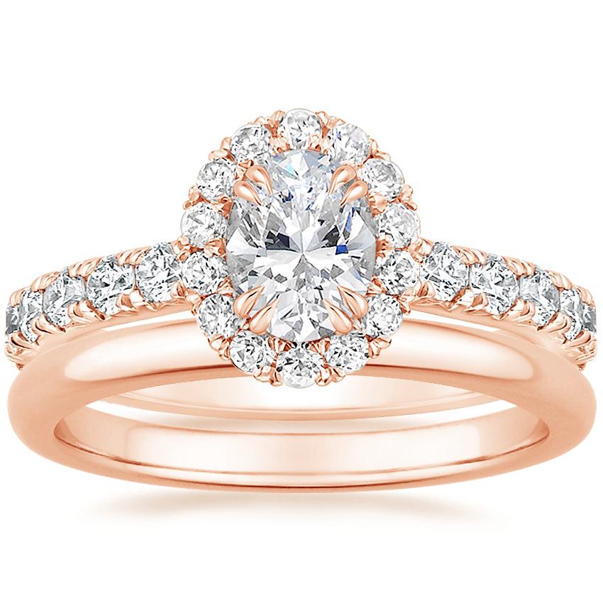 14K Rose Gold Luxe Sienna Halo Diamond Ring (3/4 ct. tw.) with 2mm Comfort Fit Wedding Ring