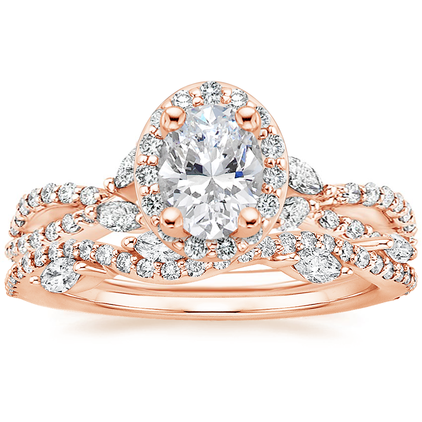 14K Rose Gold Luxe Willow Halo Diamond Ring (1/2 ct. tw.) with Luxe Winding Willow Diamond Ring (1/4 ct. tw.)