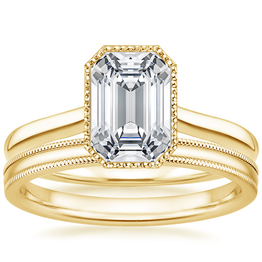 Margot Ring with 2mm Milgrain Wedding Ring in 18K Yellow Gold