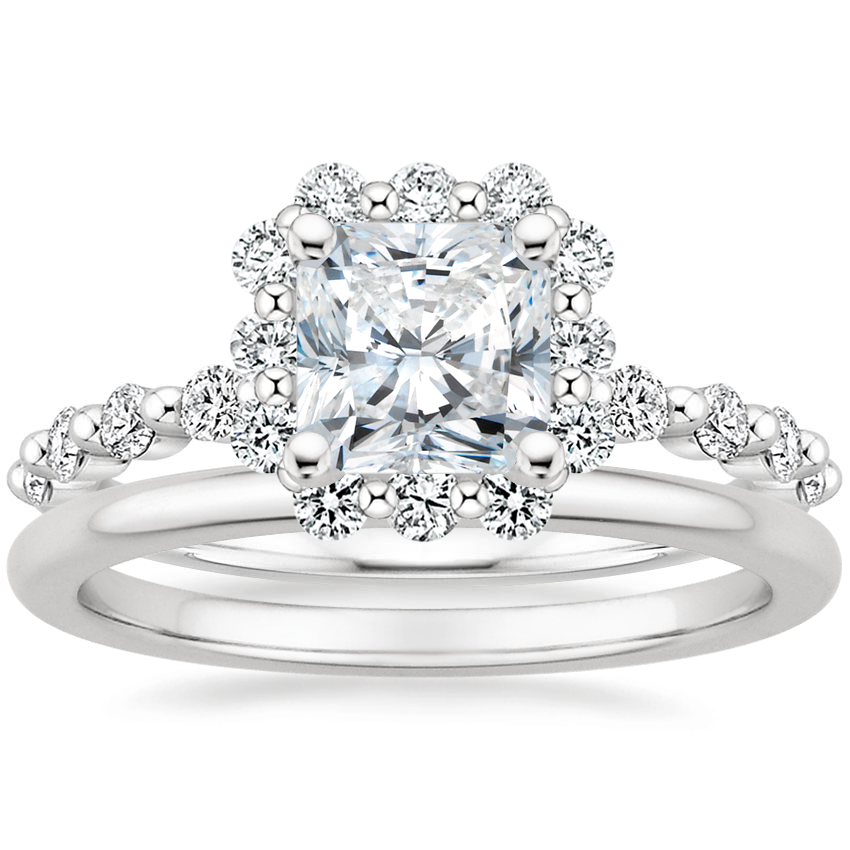 Platinum Marseille Halo Diamond Ring (1/2 ct. tw.) with Petite Comfort Fit Wedding Ring