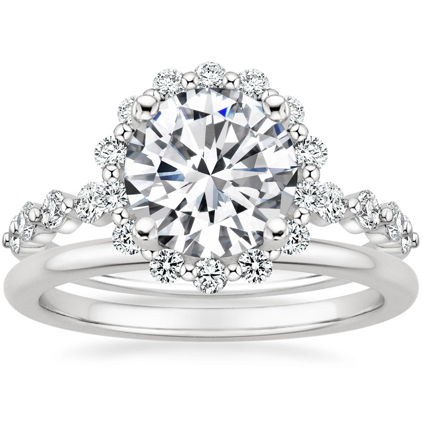 18K White Gold Marseille Halo Diamond Ring (1/2 ct. tw.) with Petite Comfort Fit Wedding Ring
