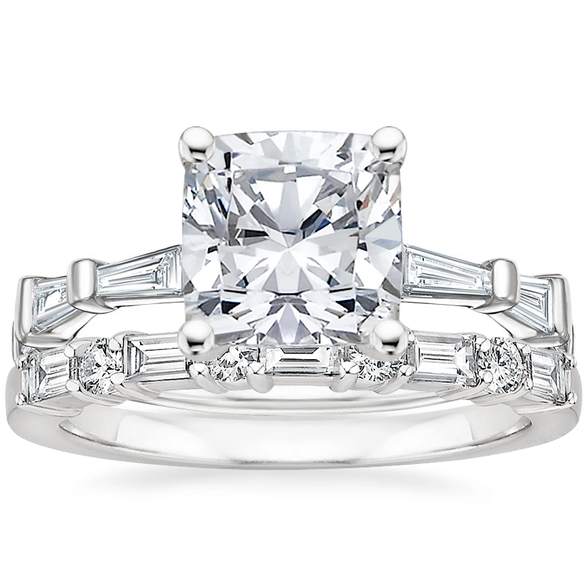18K White Gold Memoir Baguette Diamond Ring (1/2 ct. tw.) with Leona Diamond Ring (1/3 ct. tw.)