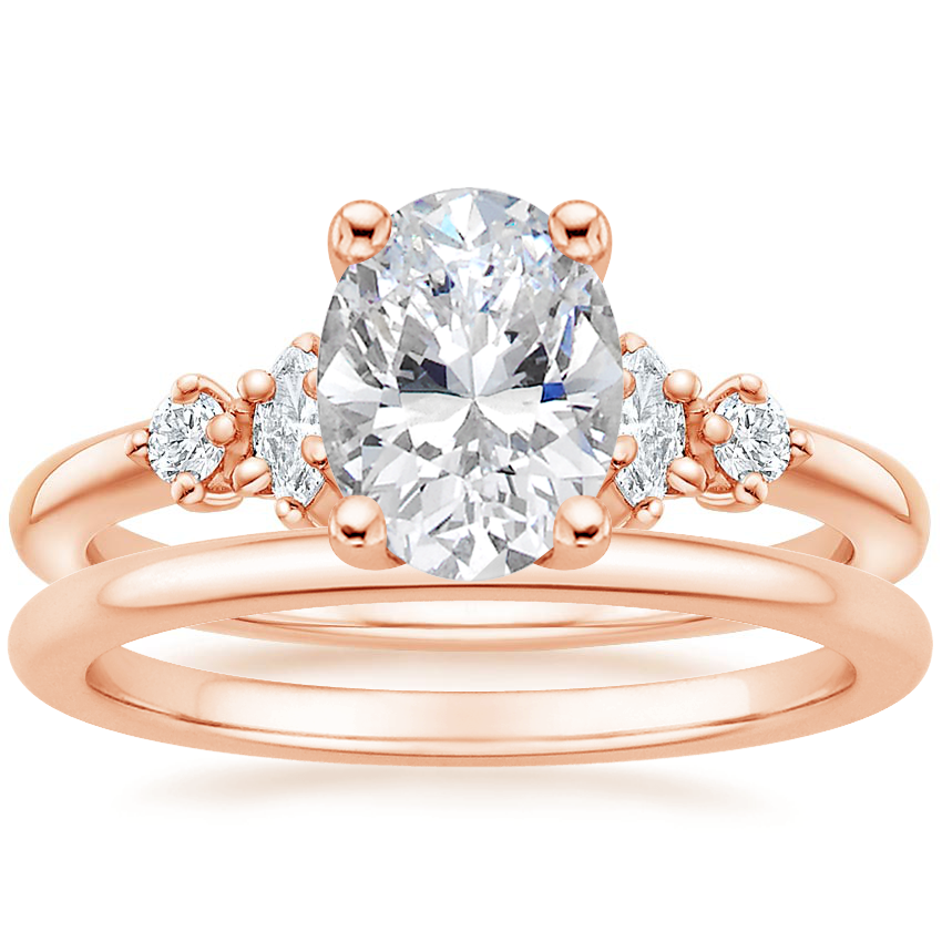 14K Rose Gold Miroir Diamond Ring with Petite Comfort Fit Wedding Ring