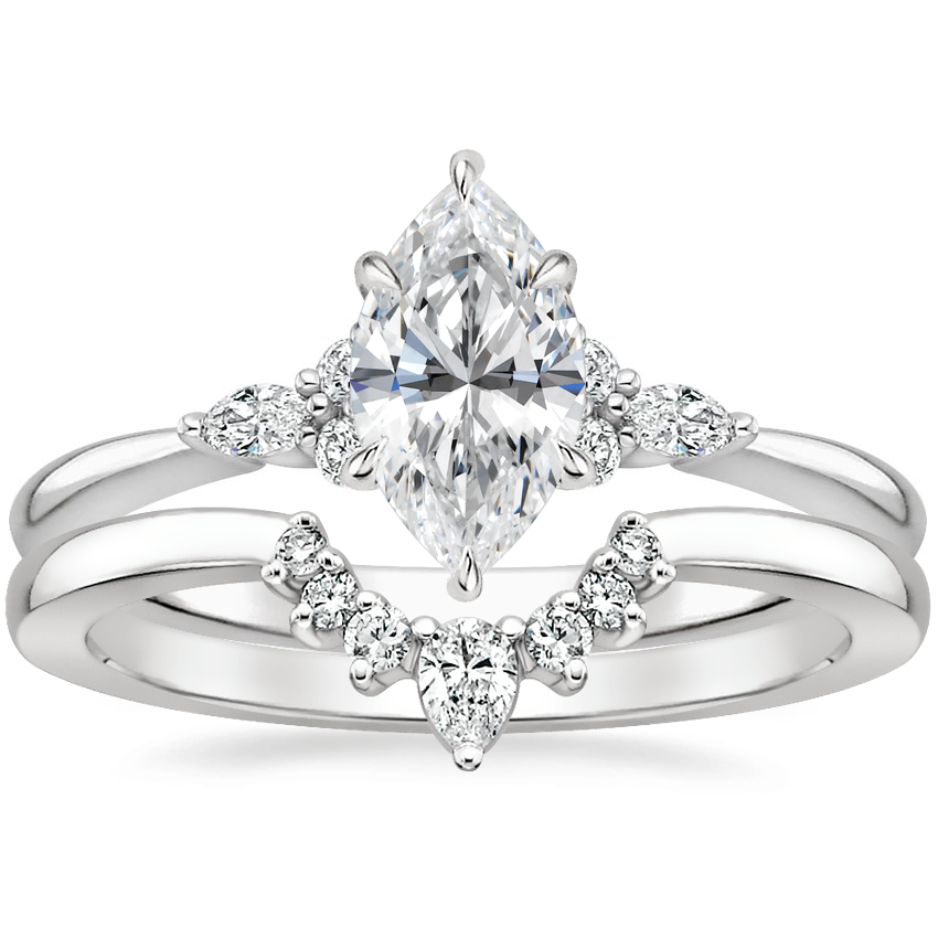 I absolutely love my rings! My husband and I went in to look around and I had already found the Nadia online and fell in love when I saw it in person. I didn't have anything in mind for the wedding band, I just wanted it to compliment the engagement ring and fit without a gap between the bands. Our consultant and the store manager, Morgan, recommended the Lunette. I loved the pairing. After the rings came in and my husband went to pick them up, the wedding band did not fit at all and there was about 1/8 inch space between them, which is the only thing I specifically wanted to avoid. It was honestly ugly. Morgan was busy with an appointment and was not available to talk to him, so he talked to a different consultant and they basically said there was nothing that could be done about it. Unhappy with that answer, we made an appointment to come back a different day and speak with Morgan. She was just as frustrated as we were and suggested we get the elongated version instead to fit around the shape of the main stone and extra prong - she thought that was the issue. It fit the display engagement ring, which was a smaller, oval stone with four prongs instead of six. The new wedding band came in and it was PERFECT! If it wasn't for Morgan, we would have returned them and gone somewhere else, which would have been really disappointing considering I loved the engagement ring so much. Customer service really saves the day! Thank you Morgan!