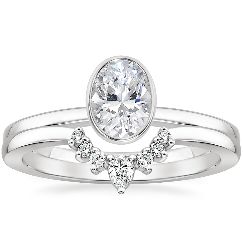 I was specifically looking for a bezel set ring because prongs get caught on things is a pet peeve and I wanted my diamond absolutely secure. This setting gave me the bezel with a simple yet elegant gallery that is very similar to a classic gallery because the sides of the diamond are still exposed! I get a stunning view of my diamond while also having a bezel set that keeps it secure and from catching on clothing! Another plus with this design is that the diamond sits high (it may seem too high at first but you get used to it) and therefore, your wedding band will mostly likely sit flush (depending on which band you choose). I chose a channeled double row pave from another maker and the way it pairs with this E-ring is perfection and everything I wanted. For reference my diamond specs are: 0.95ct Oval, E, VVS1. It sparkles beautifully :)