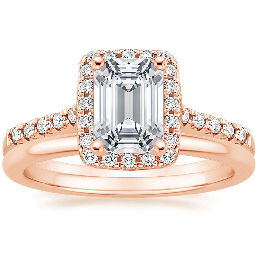 14K Rose Gold Odessa Diamond Ring (1/4 ct. tw.) with Petite Comfort Fit Wedding Ring