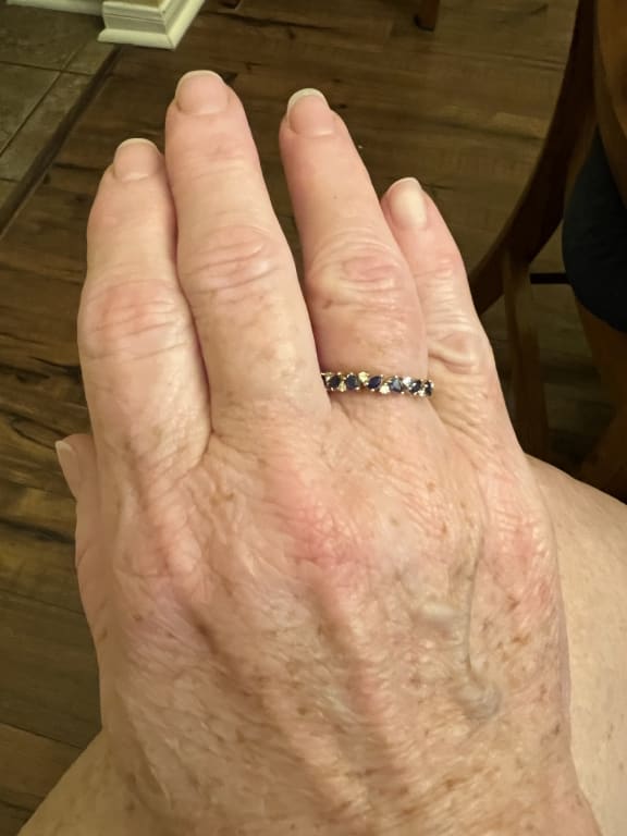 I really love this sapphire ring. It's petite so it doesn't catch on things but so pretty. ...Read More