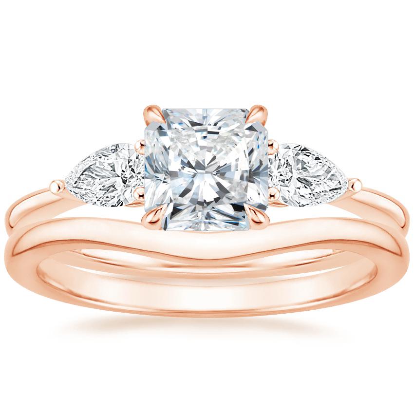 14K Rose Gold Opera Diamond Ring with Petite Curved Wedding Ring