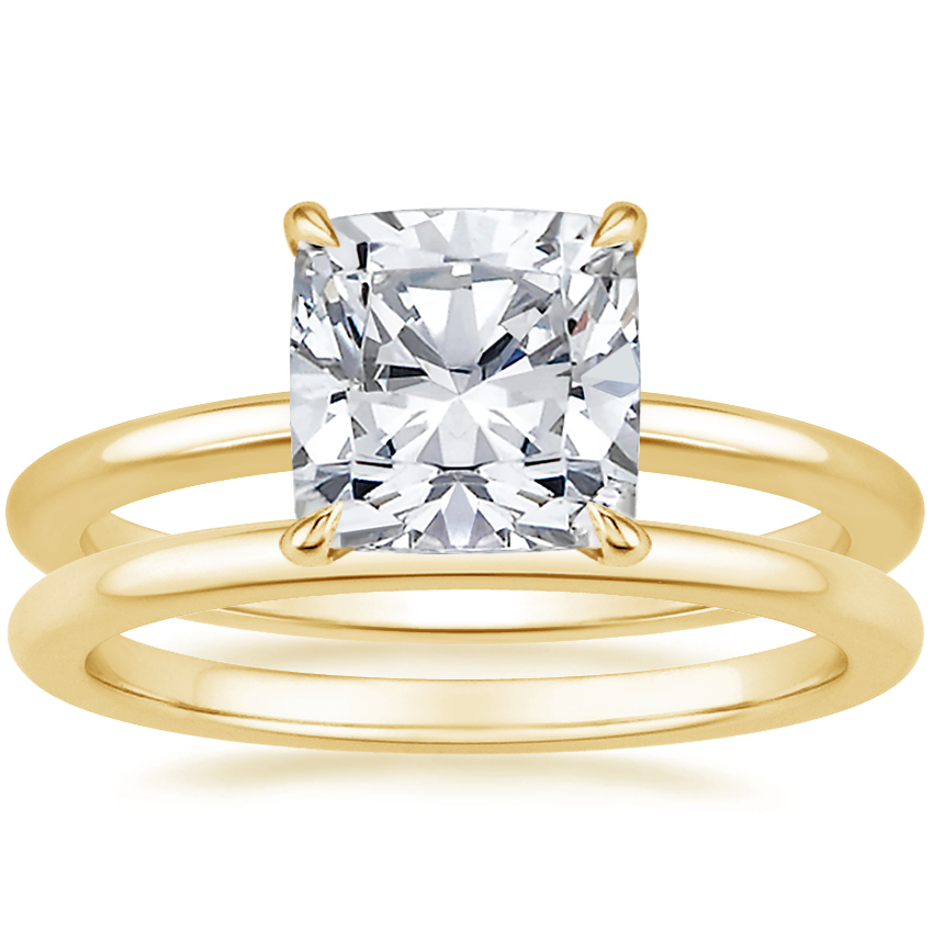 18K Yellow Gold Petite Elodie Ring with Petite Comfort Fit Wedding Ring