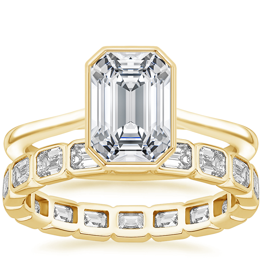 18K Yellow Gold Petite Luna Bezel Ring with Bezel Emerald Cut Eternity Diamond Ring