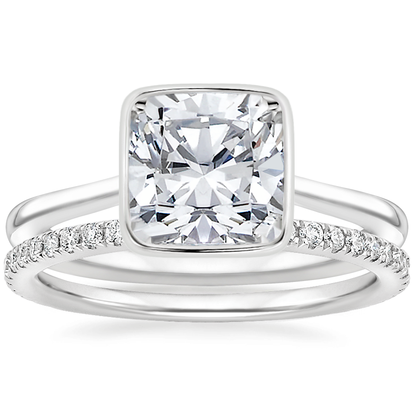 18K White Gold Petite Luna Bezel Ring with Luxe Ballad Diamond Ring (1/4 ct. tw.)