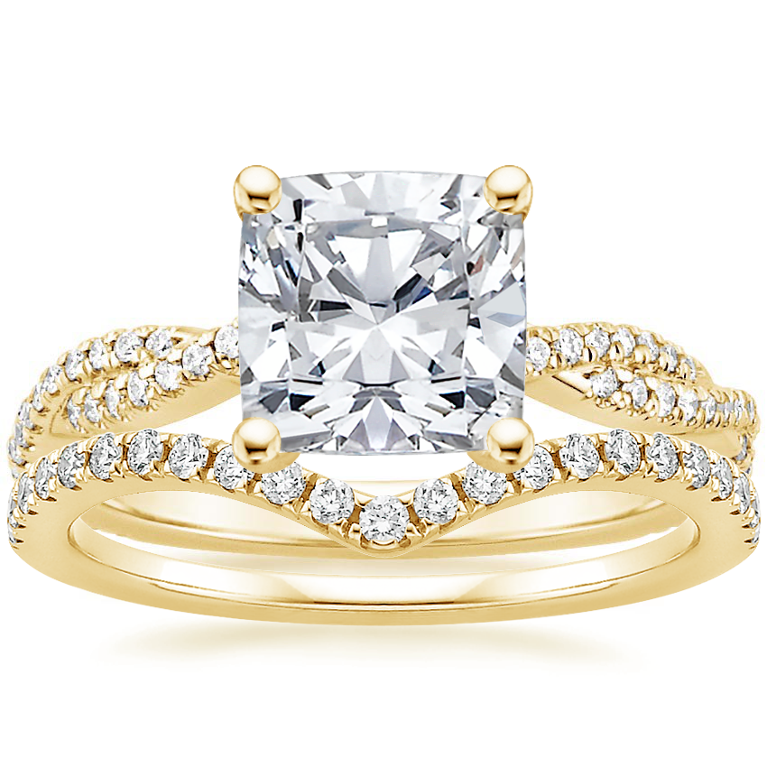 18K Yellow Gold Petite Luxe Twisted Vine Diamond Ring (1/4 ct. tw.) with Flair Diamond Ring (1/6 ct. tw.)