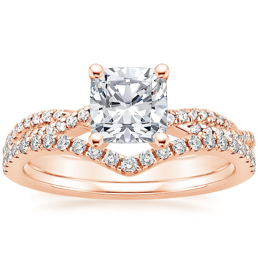 Petite Luxe Twisted Vine Diamond Ring (1/4 ct. tw.) with Flair Diamond Ring (1/6 ct. tw.) in 14K Rose Gold