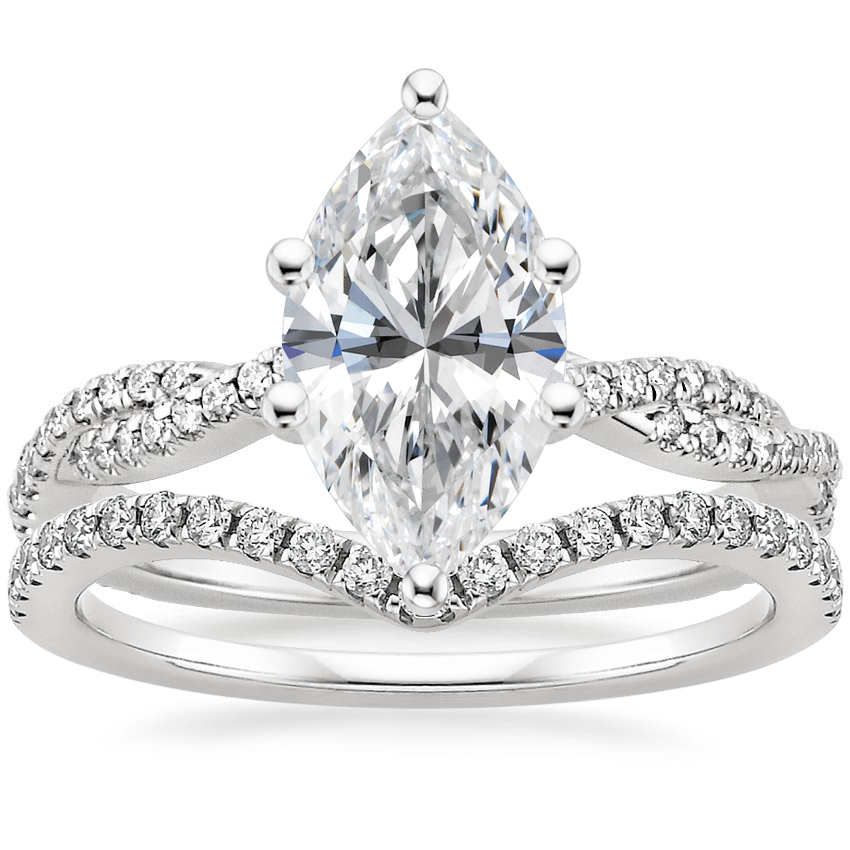 18K White Gold Petite Luxe Twisted Vine Diamond Ring (1/4 ct. tw.) with Flair Diamond Ring (1/6 ct. tw.)