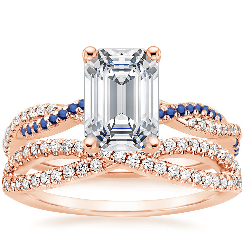 14K Rose Gold Petite Luxe Twisted Vine Sapphire and Diamond Ring with Entwined Diamond Ring (1/4 ct. tw.)