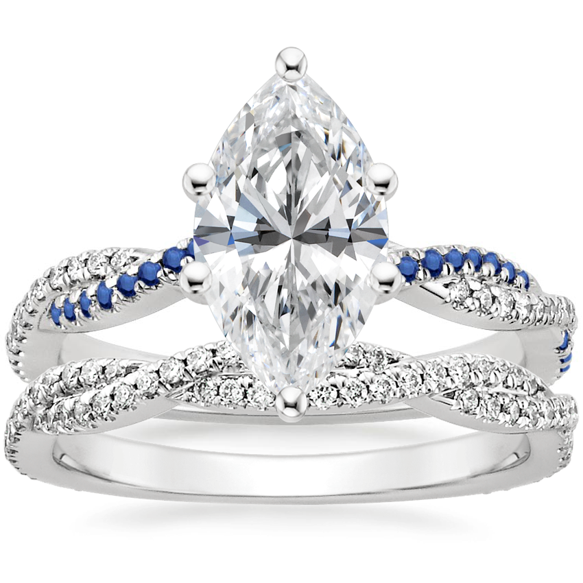 Petite Luxe Twisted Vine Sapphire and Diamond Ring with Petite Luxe Twisted Vine Diamond Ring (1/3 ct. tw.) in Platinum