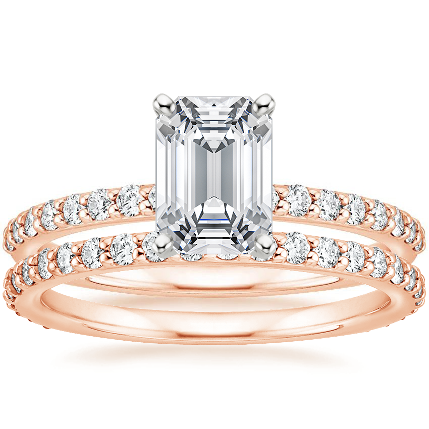 14K Rose Gold Petite Shared Prong Diamond Ring (1/4 ct. tw.) with Eternity Petite Shared Prong Diamond Ring (1/2 ct. tw.)