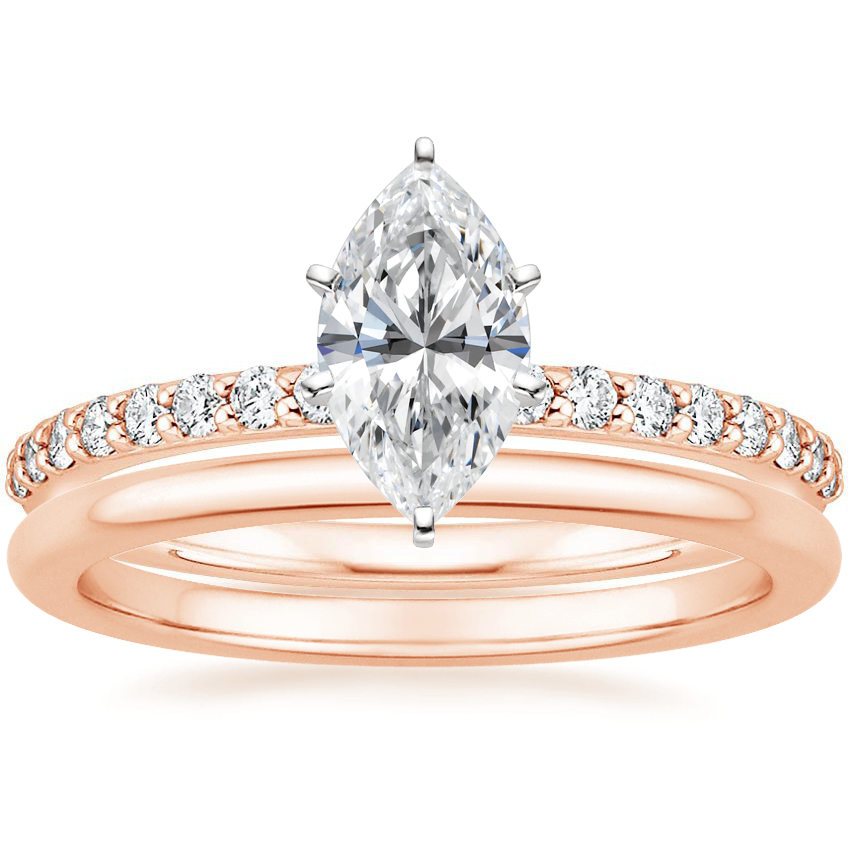 14K Rose Gold Petite Shared Prong Diamond Ring (1/4 ct. tw.) with Petite Comfort Fit Wedding Ring