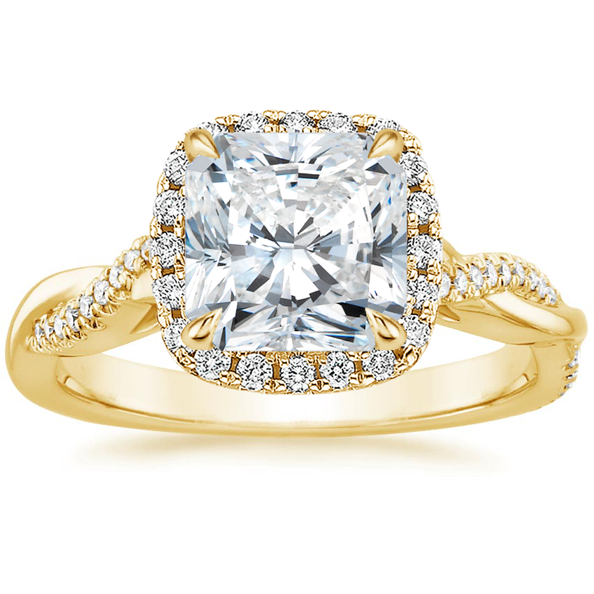 18K Yellow Gold Petite Twisted Vine Halo Diamond Ring (1/4 ct. tw.) with Petite Luxe Twisted Vine Diamond Ring