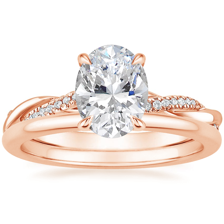 Petite Twisted Vine Hidden Halo Diamond Ring with Petite Comfort Fit Wedding Ring in 14K Rose Gold
