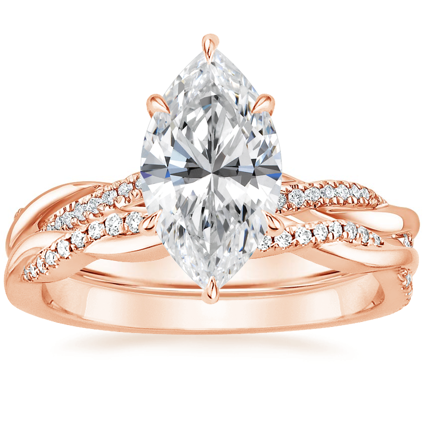 14K Rose Gold Petite Twisted Vine Hidden Halo Diamond Ring with Petite Twisted Vine Diamond Ring (1/8 ct. tw.)