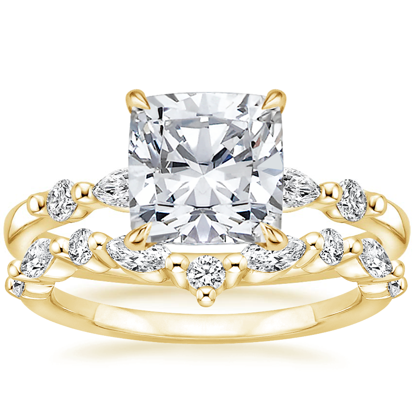 18K Yellow Gold Petite Versailles Diamond Ring (1/6 ct. tw.) with Curved Versailles Diamond Ring
