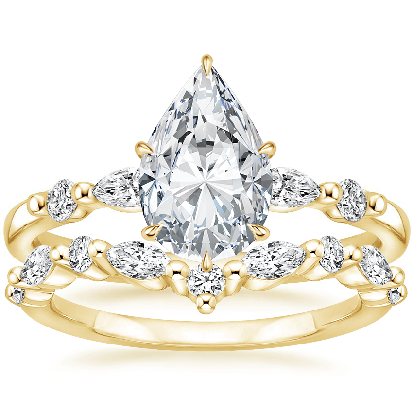 Petite Versailles Diamond Ring (1/6 ct. tw.) with Curved Versailles Diamond Ring in 18K Yellow Gold