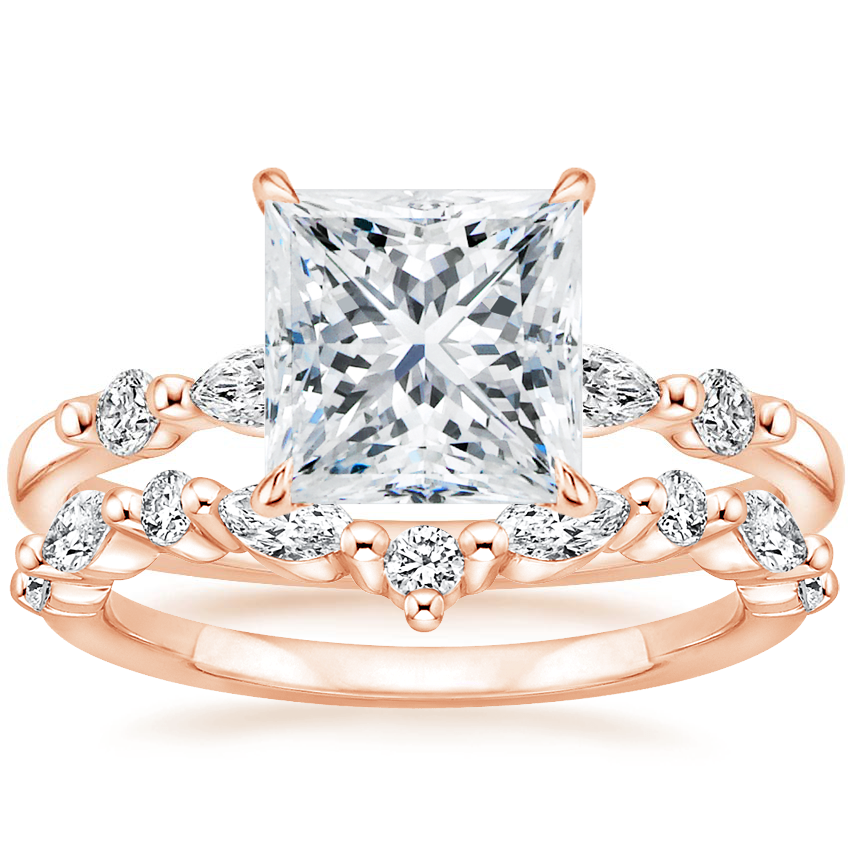 14K Rose Gold Petite Versailles Diamond Ring (1/6 ct. tw.) with Curved Versailles Diamond Ring