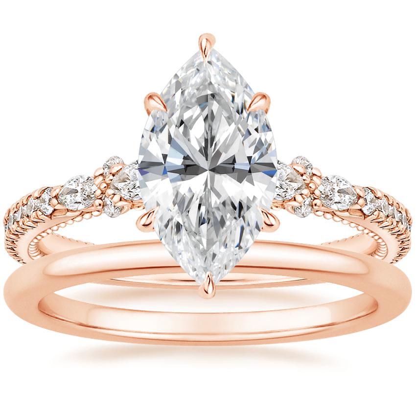 14K Rose Gold Primrose Diamond Ring with Petite Comfort Fit Wedding Ring