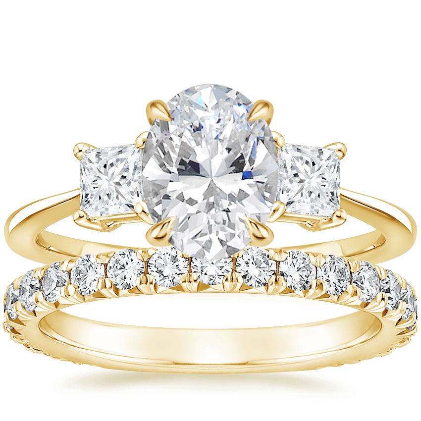 18K Yellow Gold Princess Cut Three Stone Diamond Ring with Luxe Sienna Diamond Ring (5/8 ct. tw.)