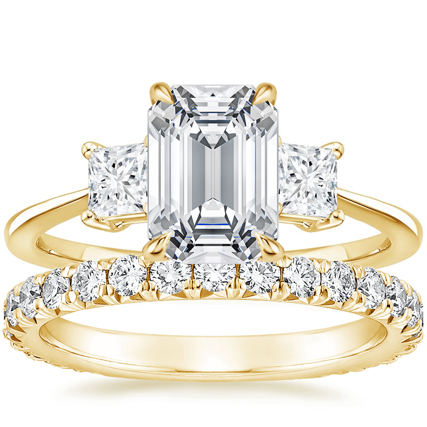 18K Yellow Gold Princess Cut Three Stone Diamond Ring with Luxe Sienna Diamond Ring (5/8 ct. tw.)