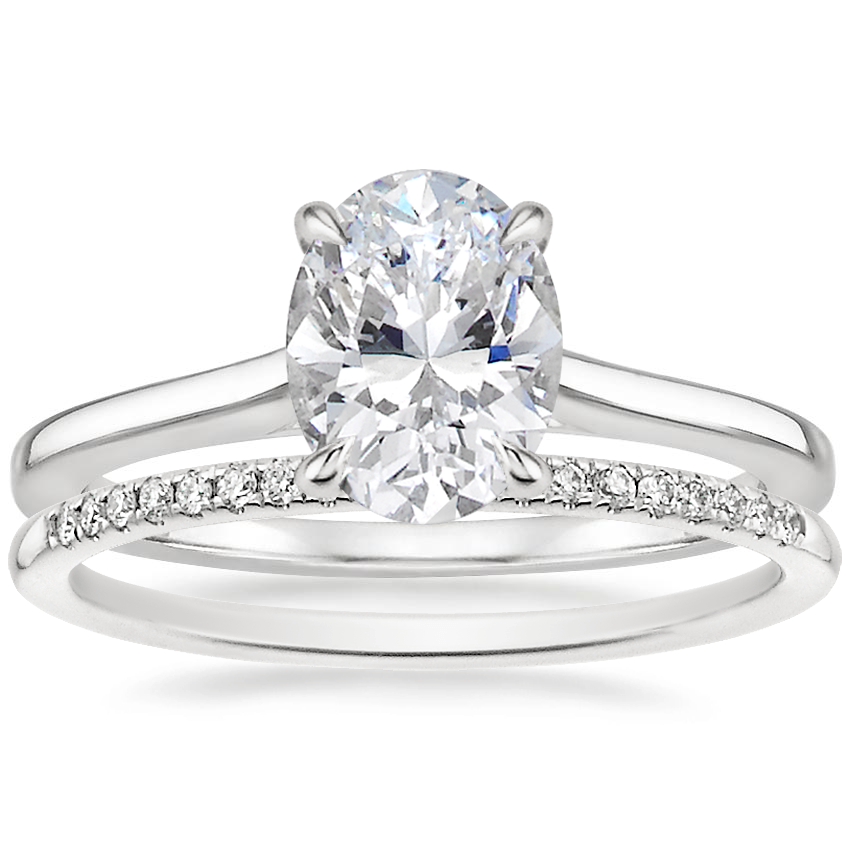 Great thin band cathedral style ring for the person who prefers smaller jewellery instead of chucky bands (or someone like me with short fingers) . The style allows another band to slip in snugs. I had a diamond upgrade done with the brilliant earth and I'm very happy! Will return in a few years for another diamond upgrade treat to myself :)