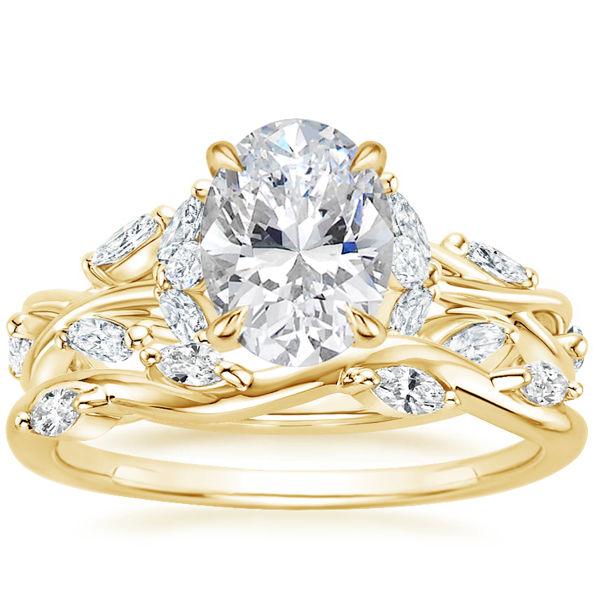 18K Yellow Gold Secret Garden Diamond Ring (1/2 ct. tw.) with Winding Willow Diamond Ring (1/8 ct. tw.)