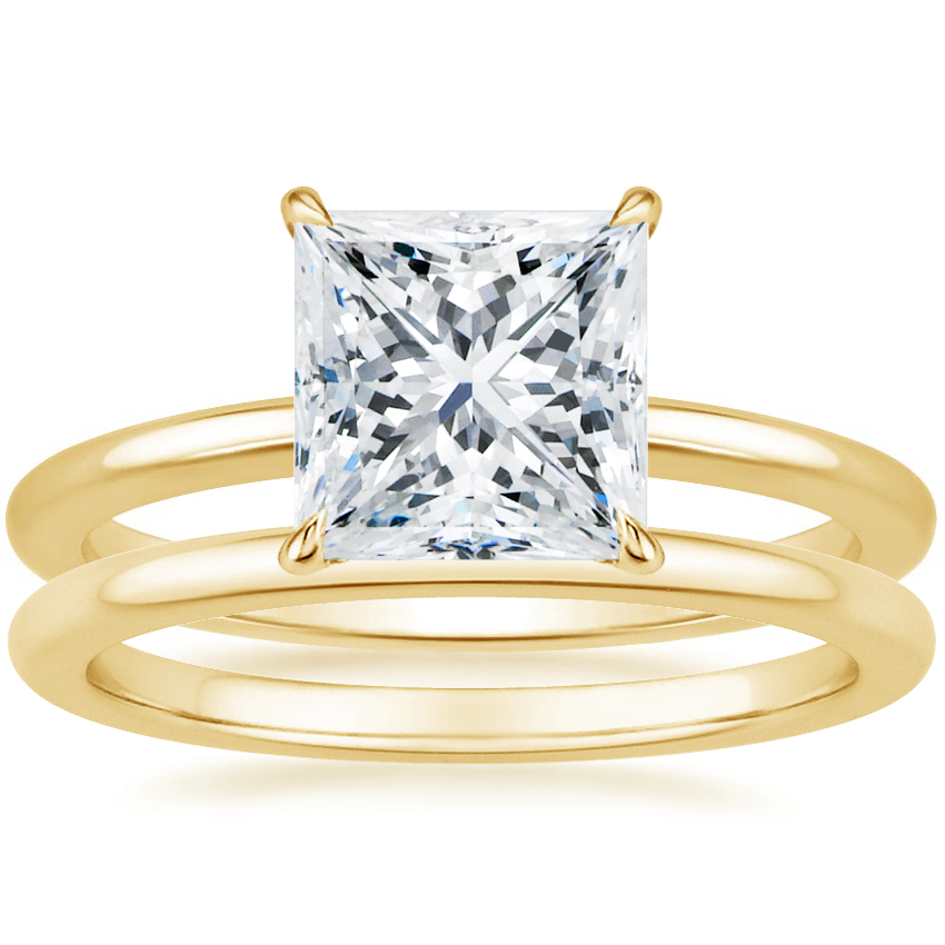 Secret Halo Diamond Ring with Petite Comfort Fit Wedding Ring in 18K Yellow Gold