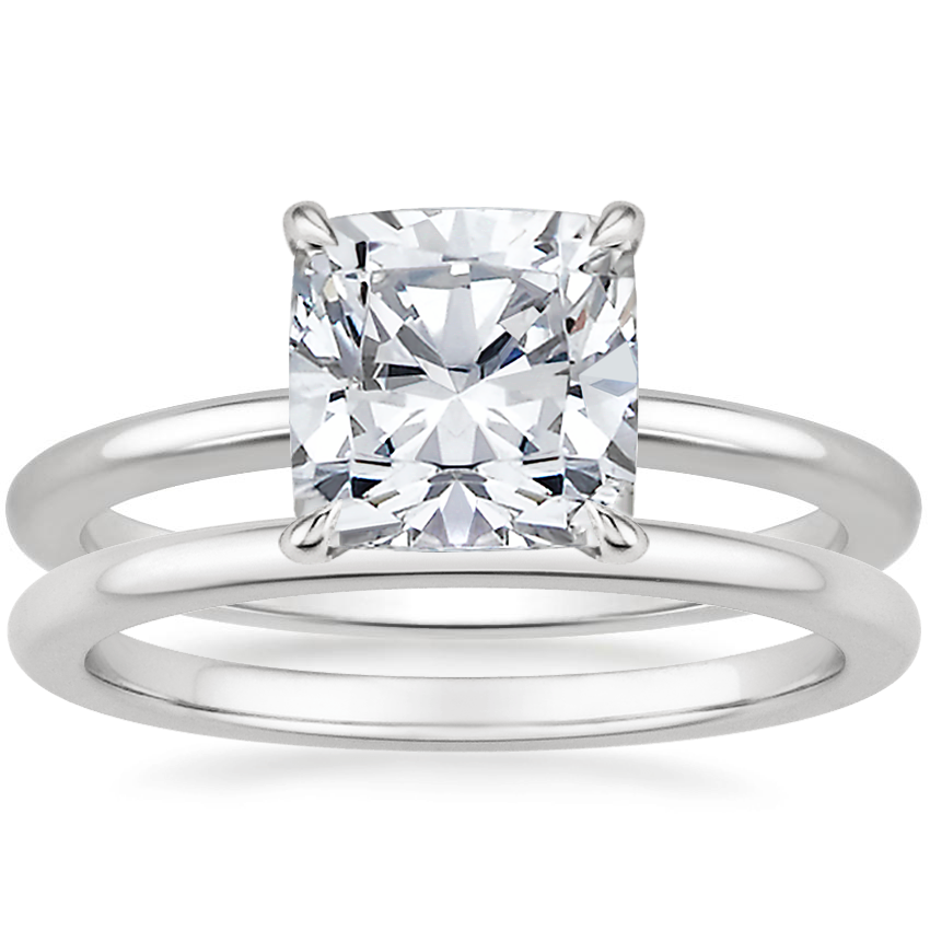 This elegant engagement ring features a glittering hidden halo of diamonds that wraps around the center gem while a petite band complements the gallery. The delicate wedding band completes the chic look with a rounded inside edge for increased comfort. ... Read More