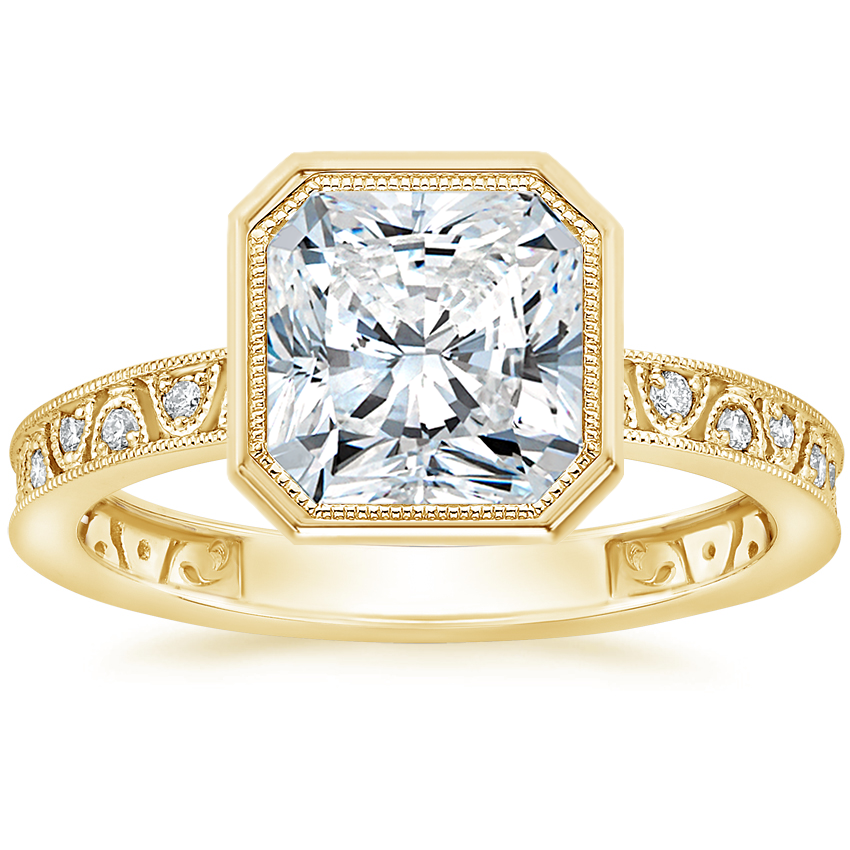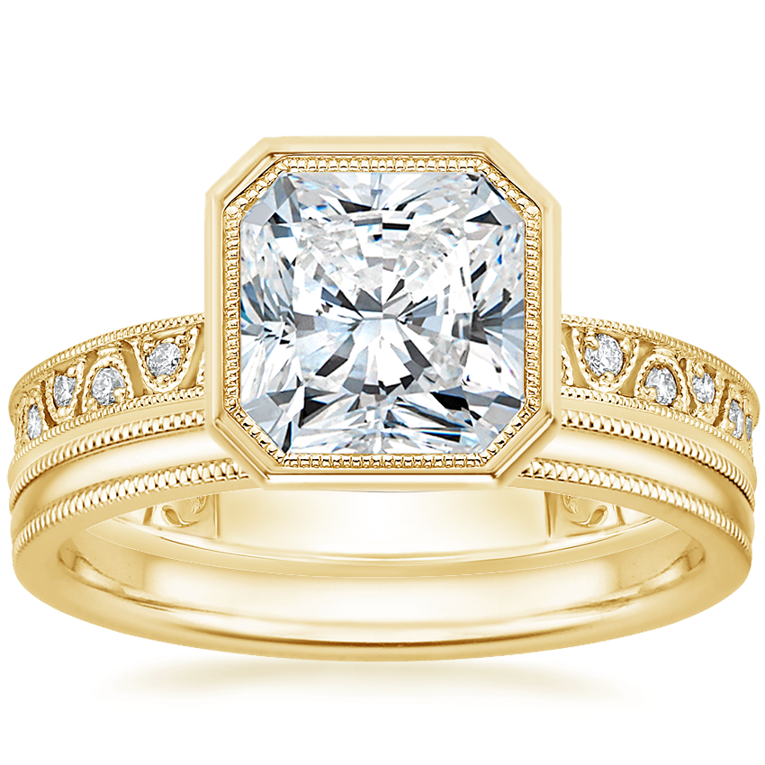 18K Yellow Gold Sinclair Art Deco Diamond Ring (1/6 ct. tw.) with 2mm Milgrain Wedding Ring