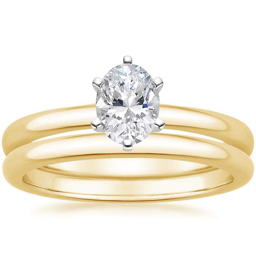 18K Yellow Gold Six-Prong 2mm Comfort Fit Bridal Set