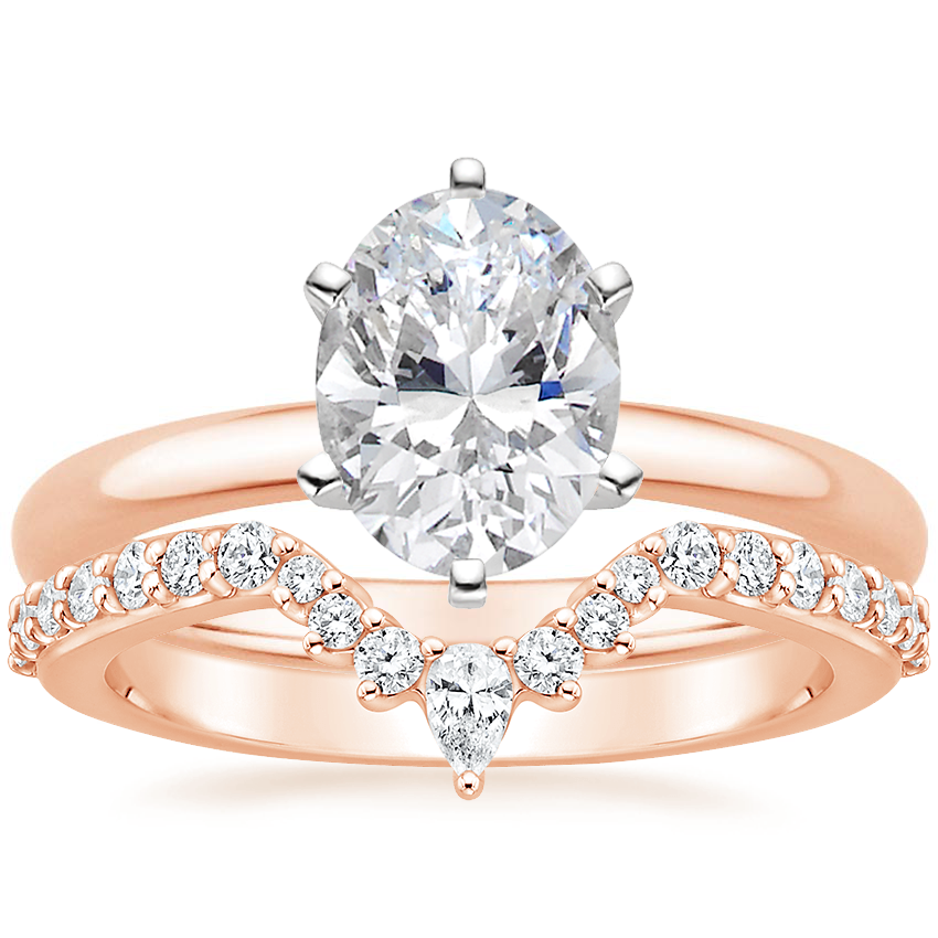 14K Rose Gold Six-Prong 2mm Comfort Fit Ring with Luxe Lunette Diamond Ring (1/3 ct. tw.)
