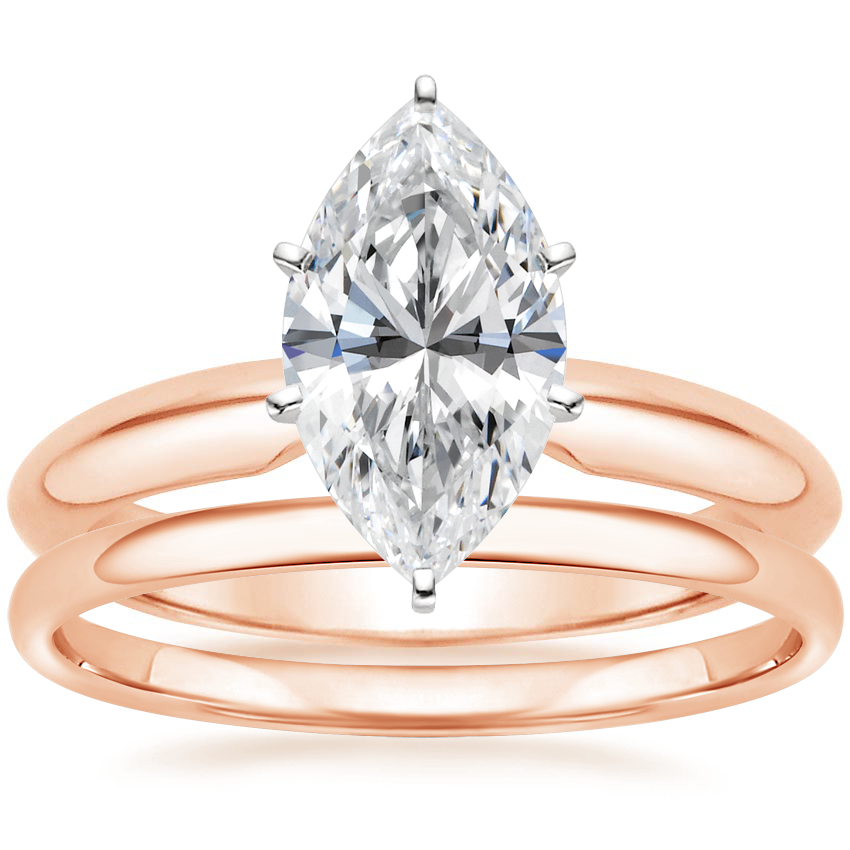 Six-Prong Classic Ring with 1.5mm Slim Profile Wedding Ring in 14K Rose Gold