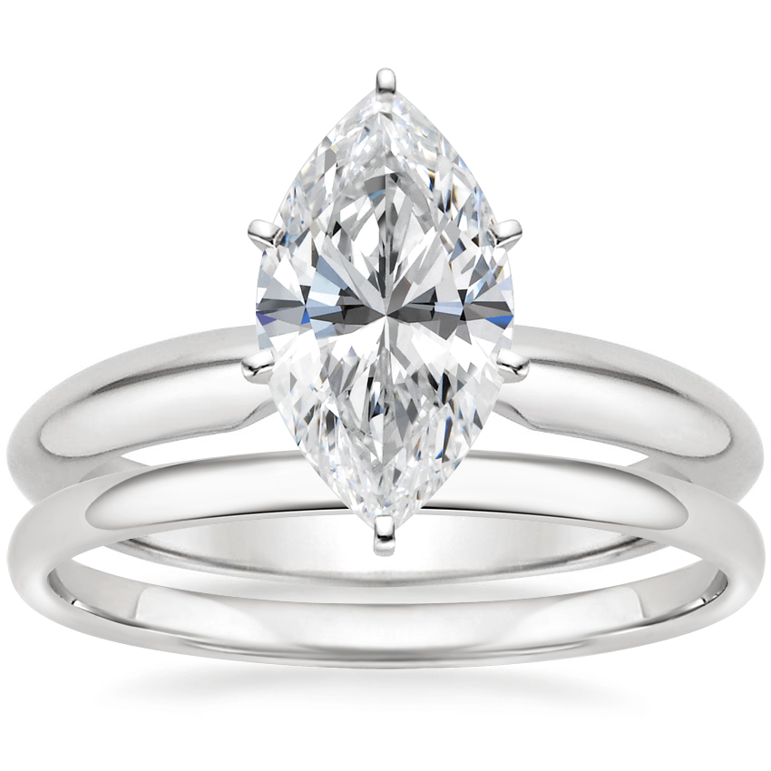 This is a beautiful, classic setting and the 6 prongs make it elegant. I exchanged the petite comfort fit setting for this one. The comfort fit band was thin and I was worried about how it would hold up long term. I decided to go with something over 2mm and this band is perfect. I absolutely love it. I was also worried about the setting being secure enough for a pear diamond (marquise and pear tips are more prone to chipping) so I was pleasantly surprised to see the prong at the tip of the diamond is thicker than the other prongs. The exchange process was a breeze and I can't recommend Brilliant Earth enough. Size 4 platinum setting with 0.75 carat pear natural diamond.