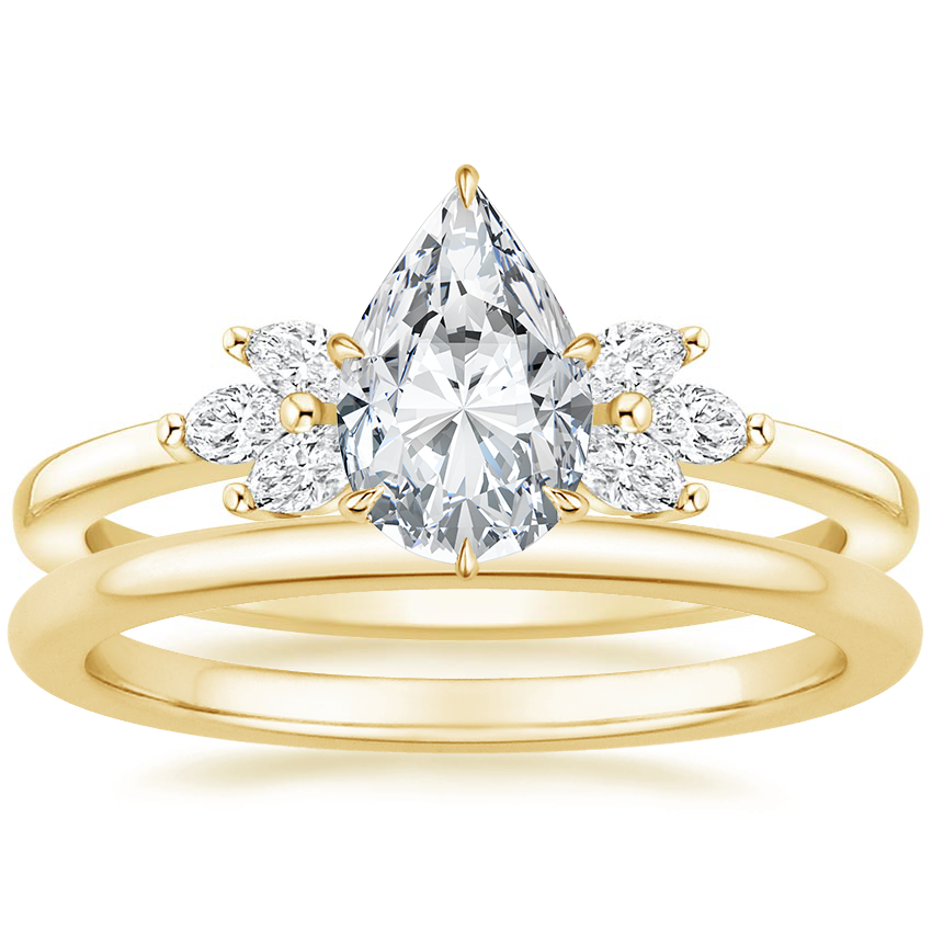 18K Yellow Gold Stella Diamond Ring with Petite Comfort Fit Wedding Ring